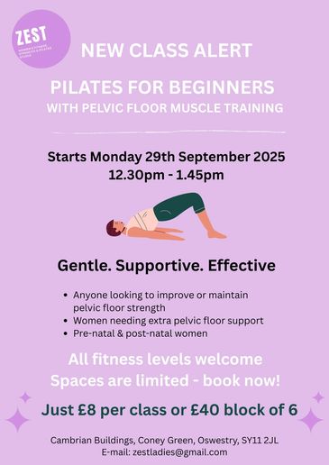 A new class starting in September - Beginners Pilates with a focus on Pelvic Floor.